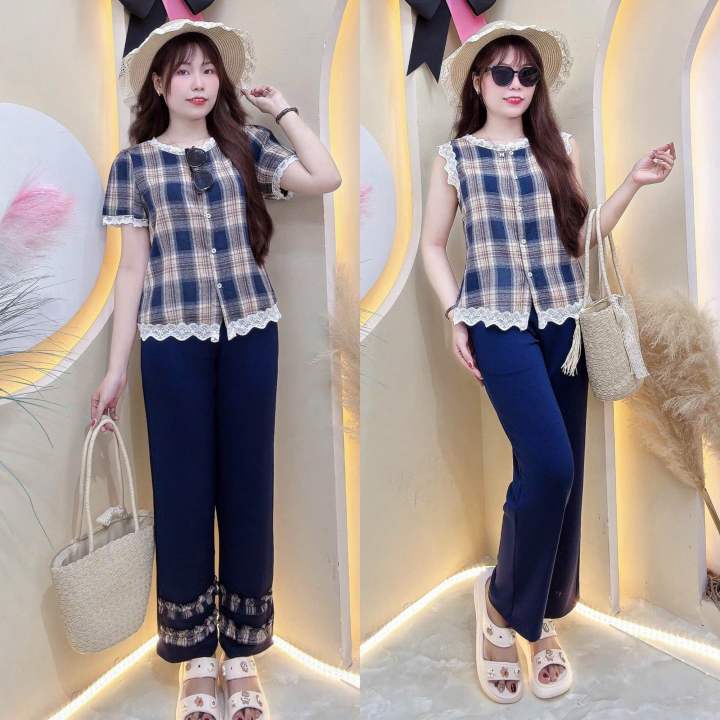 (Đồ bộ Nữ BigSiZe 50-95kg) Bộ caro phối-Sét bộ mặc hè hay mặc đi biển bao xinh BIGSIZE 50kg-90kg chất áo kate quần thun