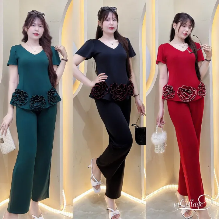 BigSize Đồ Bộ Nữ BigSiZe 50-95kg - Sét Bộ Bông Hồng điệu đà tiểu thư cho cô nàng mũ mĩm chất liệu Thun Poly 2 Da Co Giãn Bốn Chiều Thoải Mái